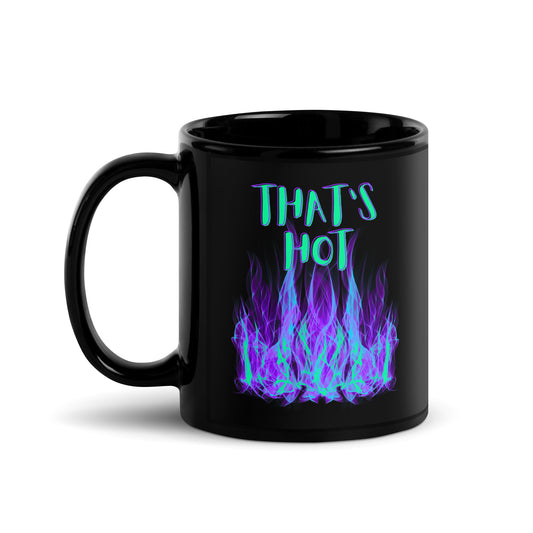 "That's Hot" Black Mug - Purple and Green Flame Edition