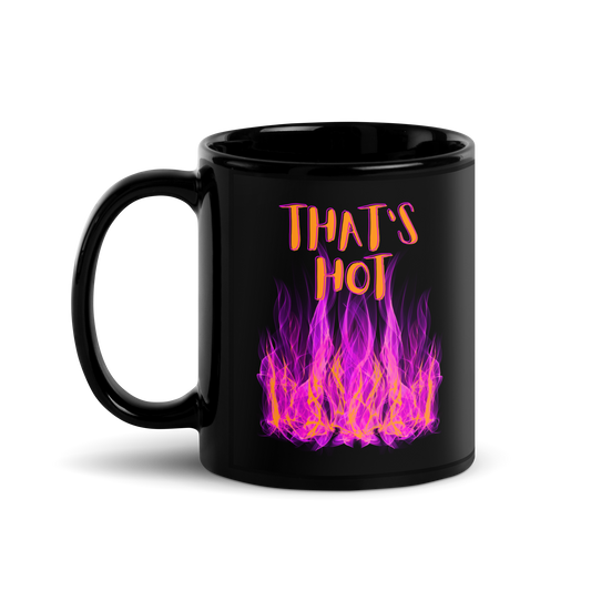 "That's Hot" Black Mug - Pink and Orange Flame Edition